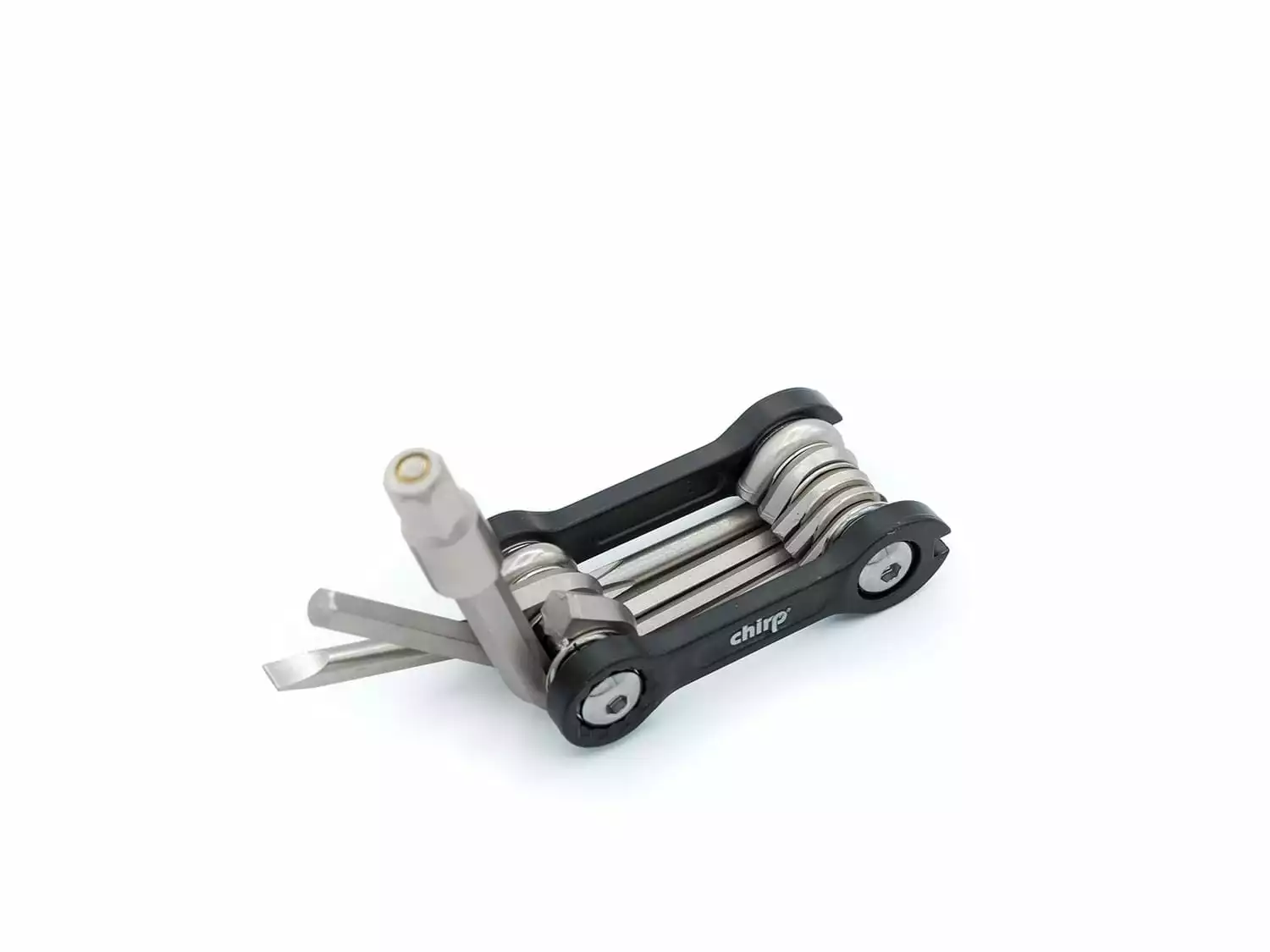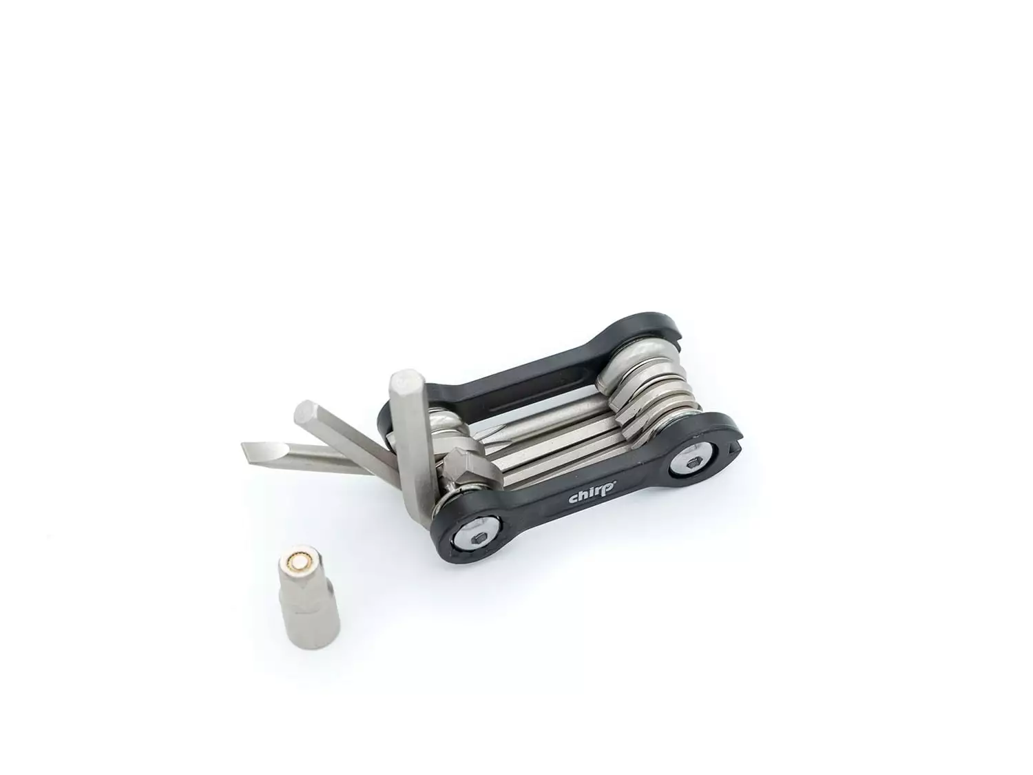 Perfekt für die Jackentasche: Das super-kompakte Pocket-Tool von Chirp Bike Parts. Insgesamt 10 Funktionen zum Festziehen und Lösen der gängigsten Schraubverbindunge
