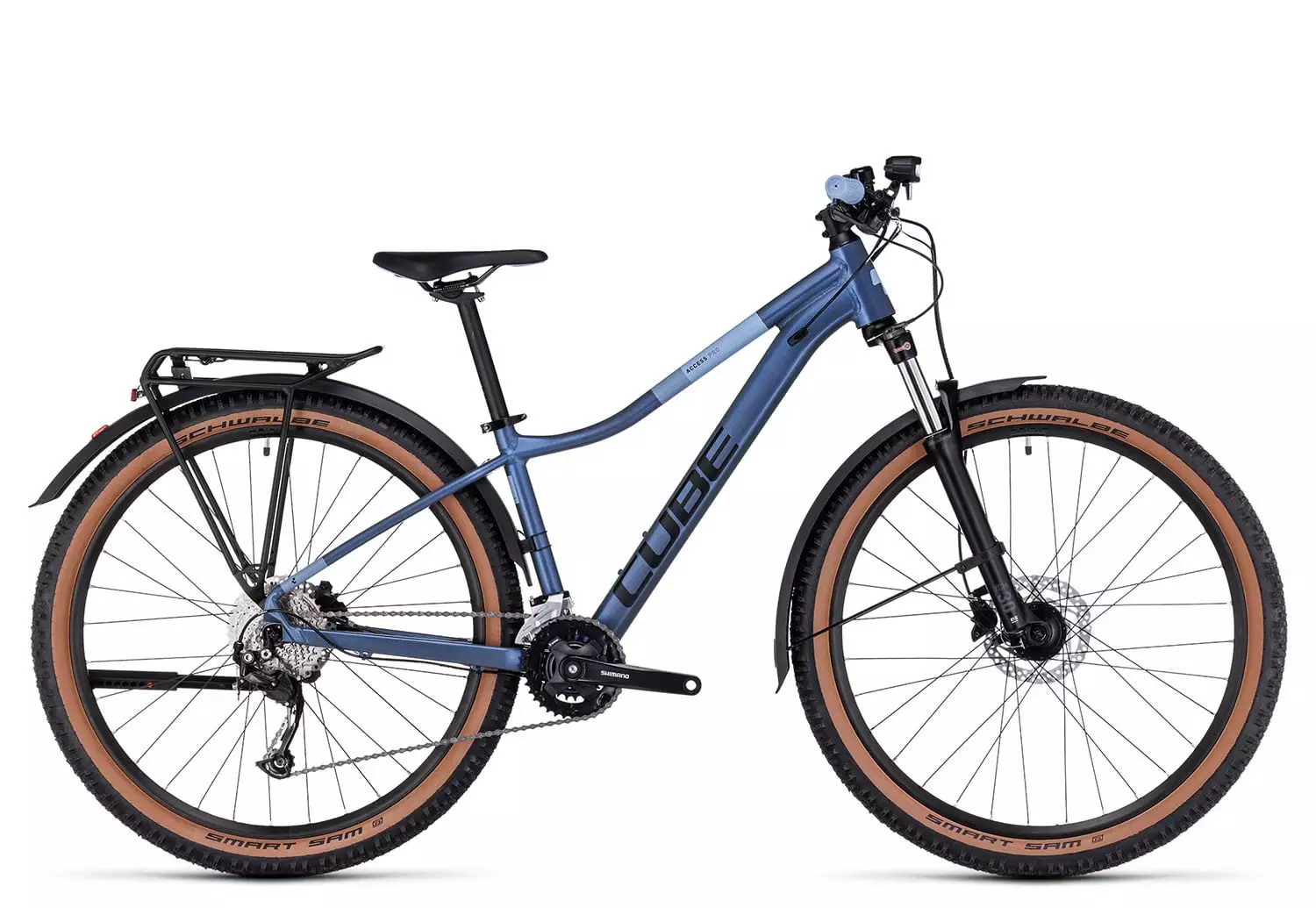 Das Cube Access WS Pro zeigt sich als wertig ausgestattetes Anfänger-Hardtail, welches du dank der ALLROAD-Ausrüstung ab Werk auch gut auf dem Weg zur Uni oder zur Schule fahren kannst.